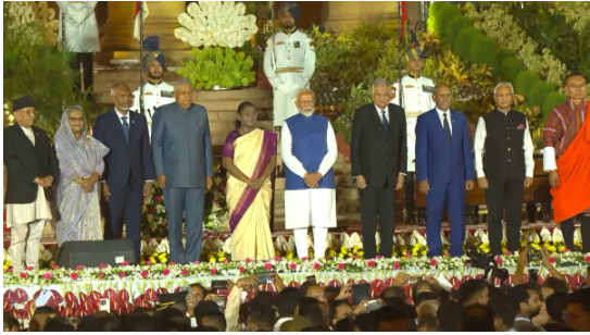 लोकसभा चुनाव में राजग की जीत के बाद नरेन्द्र मोदी ने रविवार को लगातार तीसरी बार भारत के प्रधानमंत्री पद की शपथ ली। देश की आजादी के बाद मोदी पहले ऐसे गैर कांग्रेसी राजनेता हैं, जो लगातार तीसरी बार प्रधानमंत्री बने हैं। मंत्रिमंडल में प्रधानमंत्री के अलावा 30 कैबिनेट, सात राज्यमंत्री (स्वतंत्र प्रभार) और 34 राज्यमंत्रियों ने शपथ ली है। मंत्रिमंडल में सामाजिक संतुलन का भी ध्यान रखा गया है।