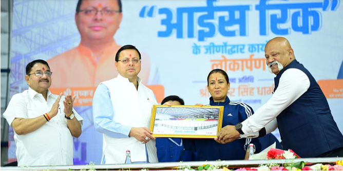महाराणा प्रताप स्पोर्ट्स कॉलेज में भारत के एकमात्र अंतरराष्ट्रीय स्तर के आइस स्केटिंग रिंक का लोकार्पण सोमवार को मुख्यमंत्री पुष्कर सिंह धामी और खेल मंत्री रेखा आर्या ने किया। करीब एक दशक से बंद रहे आइस रिंक को लगभग छह करोड़ रुपये की लागत से फिर तैयार किया गया है। इस दौरान स्पोर्ट्स कॉलेज में ही 599 लाख की लागत से बने घुड़सवारी मैदान (इक्वेस्ट्रियन) का लोकार्पण भी हुआ। मुख्यमंत्री धामी ने कहा कि दोनों उपलब्धियां न सिर्फ उत्तराखंड के लिए बल्कि भारत के लिए गौरव साबित होंगी। उन्होंने याद किया कि वर्ष 2011 में बने आइस स्केटिंग रिंक में साउथ-इस्टर्न एशियन विंटर गेम्स का आयोजन हुआ था। जिसमें भारत समेत भूटान, नेपाल, मालदीव और श्रीलंका जैसे देशों के खिलाड़ियों ने भाग लिया। लेकिन रखरखाव के अभाव में रिंक बंद हो गया था, लेकिन राज्य सरकार ने उत्तराखंड को ‘खेल भूमि’ के रूप में स्थापित करने के अपने संकल्प के तहत इसे फिर से शुरू करने का संकल्प लिया। इसके लिए विदेशों से इंजीनियर भी बुलाए गए। रिंक की बिजली आवश्यकता पूरी करने के लिए एक मेगावाट का सोलर प्लांट स्थापित है, जो इसे ग्रीन गेम्स की थीम पर संचालित करेगा। उन्होंने रिंक को भारत का ही नहीं, दक्षिण एशिया का सबसे बड़ा स्केटिंग रिंक बताया। वहीं, खेल मंत्री आर्या ने कहा कि राष्ट्रीय खेलों के दौरान कई बड़ी खेल अवस्थापनाएं तैयार की गई हैं। अब आइस रिंक और घुड़सवारी मैदान के शुरू होने से राज्य की खेल विरासत और संपन्न हो गई है। आइस स्केटिंग फेडरेशन ऑफ इंडिया ने रिंक में खेलों के आयोजन के लिए प्रस्ताव भेजा है, जिससे आने वाले समय में राष्ट्रीय और अंतरराष्ट्रीय स्तर की प्रतियोगिताएं आयोजित की जा सकेंगी। इस मौके पर प्रदर्शनी के तौर पर आइस हॉकी मैच भी खेला गया। इस मौके पर रायपुर विधायक उमेश शर्मा काऊ, विशेष प्रमुख सचिव अमित सिन्हा, अपर सचिव प्रशांत आर्य व पूर्व खिलाड़ी मौजूद रहे।
